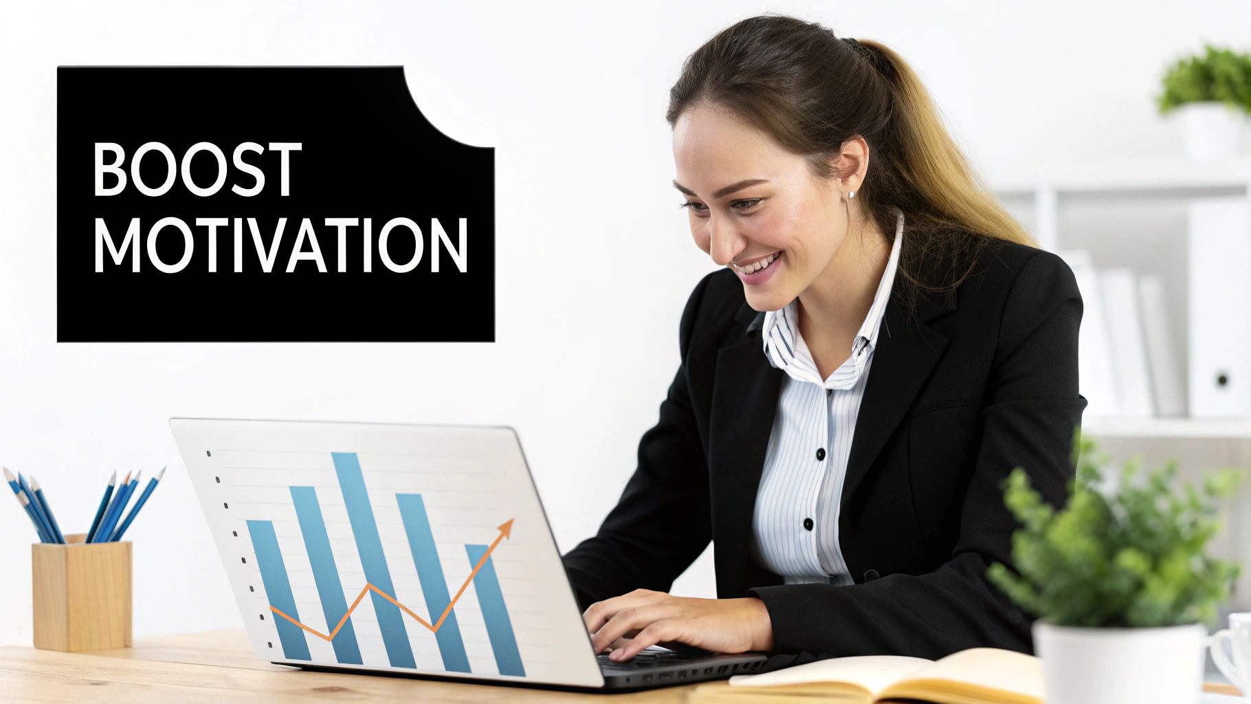 Finally, give your reps a live look at their progress. Nothing fuels motivation more than seeing exactly where they stand against their quota and how much they've earned in real-time. You can find some great sales performance dashboard examples that show you how to bring this data to life. This transparency empowers your team to own their results and drives them to perform.